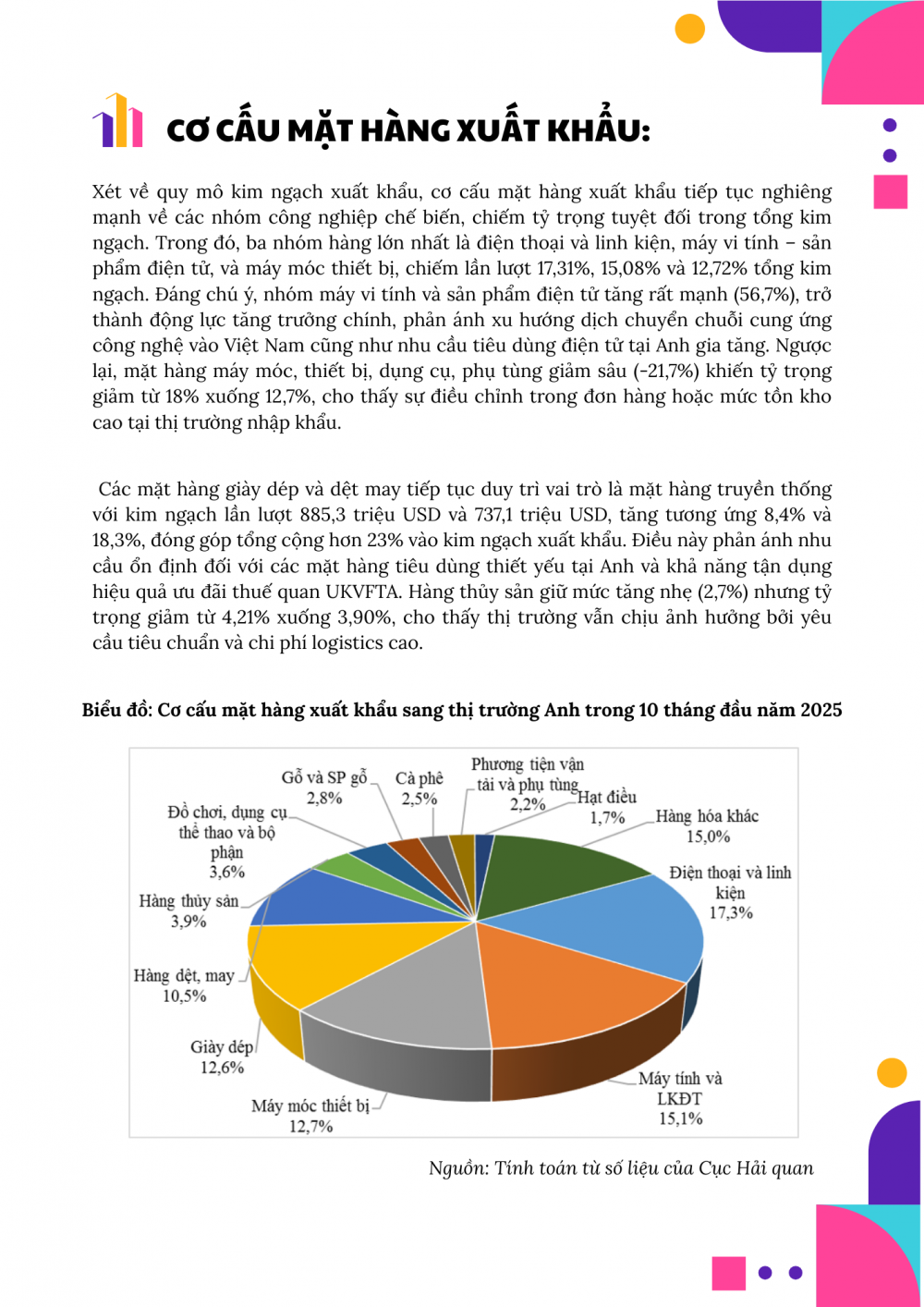 10 tháng năm 2025: Kim ngạch thương mại song phương giữa Việt Nam và Anh tăng 11,5% so với cùng kỳ năm trước