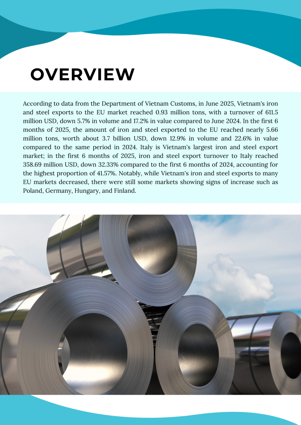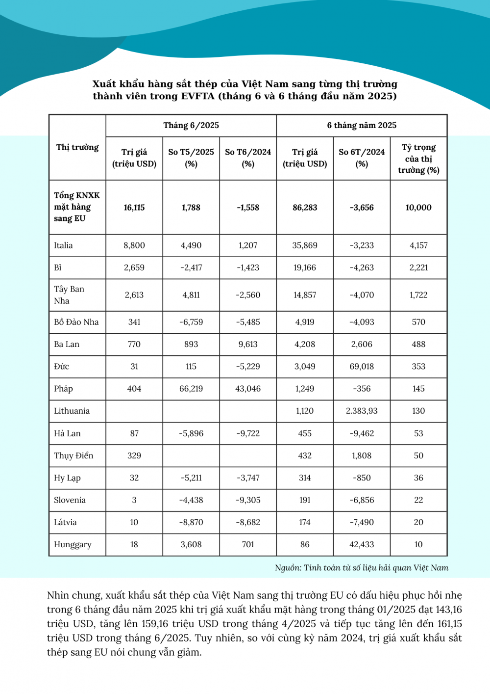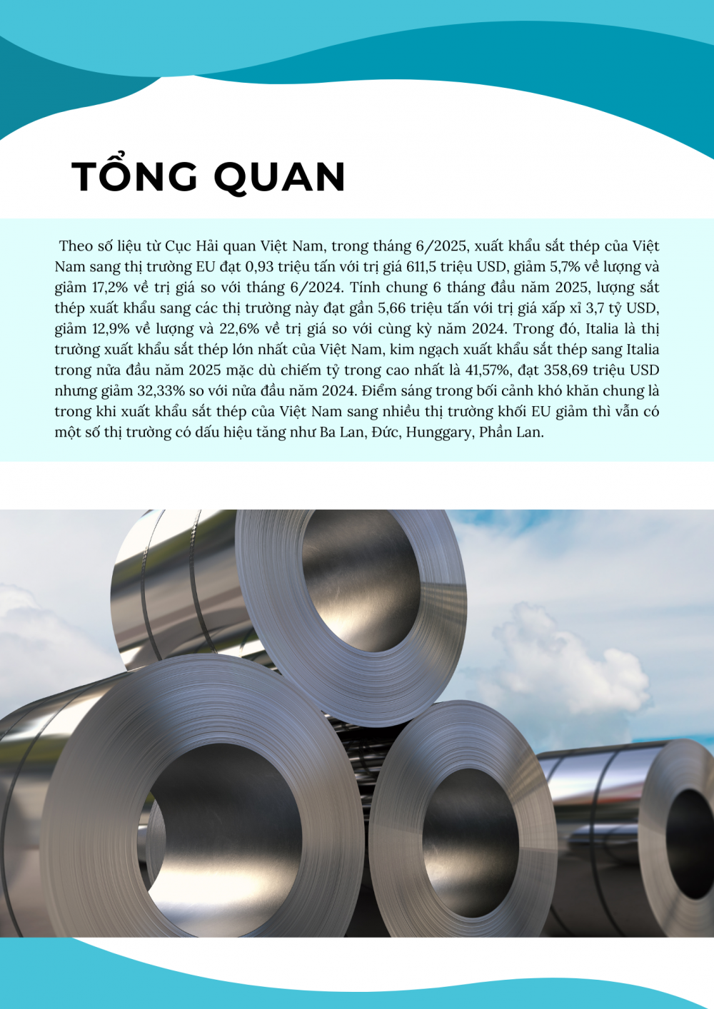 6 tháng năm 2025: Xuất khẩu mặt hàng sắt thép sang EU phục hồi nhẹ trong bối cảnh thị trường đối mặt với nhiều khó khăn và thách thức