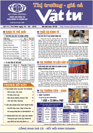Bản tin Thị trường Giá cả Vật tư Số 111, Thứ Năm ngày 16/5/2019