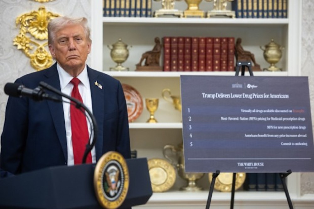 Ảnh minh họa: Tổng thống Mỹ Donald Trump thông báo chính sách liên quan tới giá dược phẩm