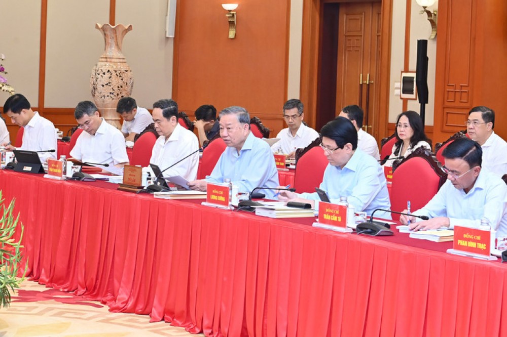 Sáng 10/9, tại Trụ sở Trung ương Đảng, Tổng Bí thư Tô Lâm chủ trì buổi làm việc của Bộ Chính trị với Ban Thường vụ Đảng ủy Chính phủ, cho ý kiến vào dự thảo các văn kiện, phương án nhân sự và công tác chuẩn bị Đại hội đại biểu Đảng bộ Chính phủ lần thứ I, nhiệm kỳ 2025-2030.