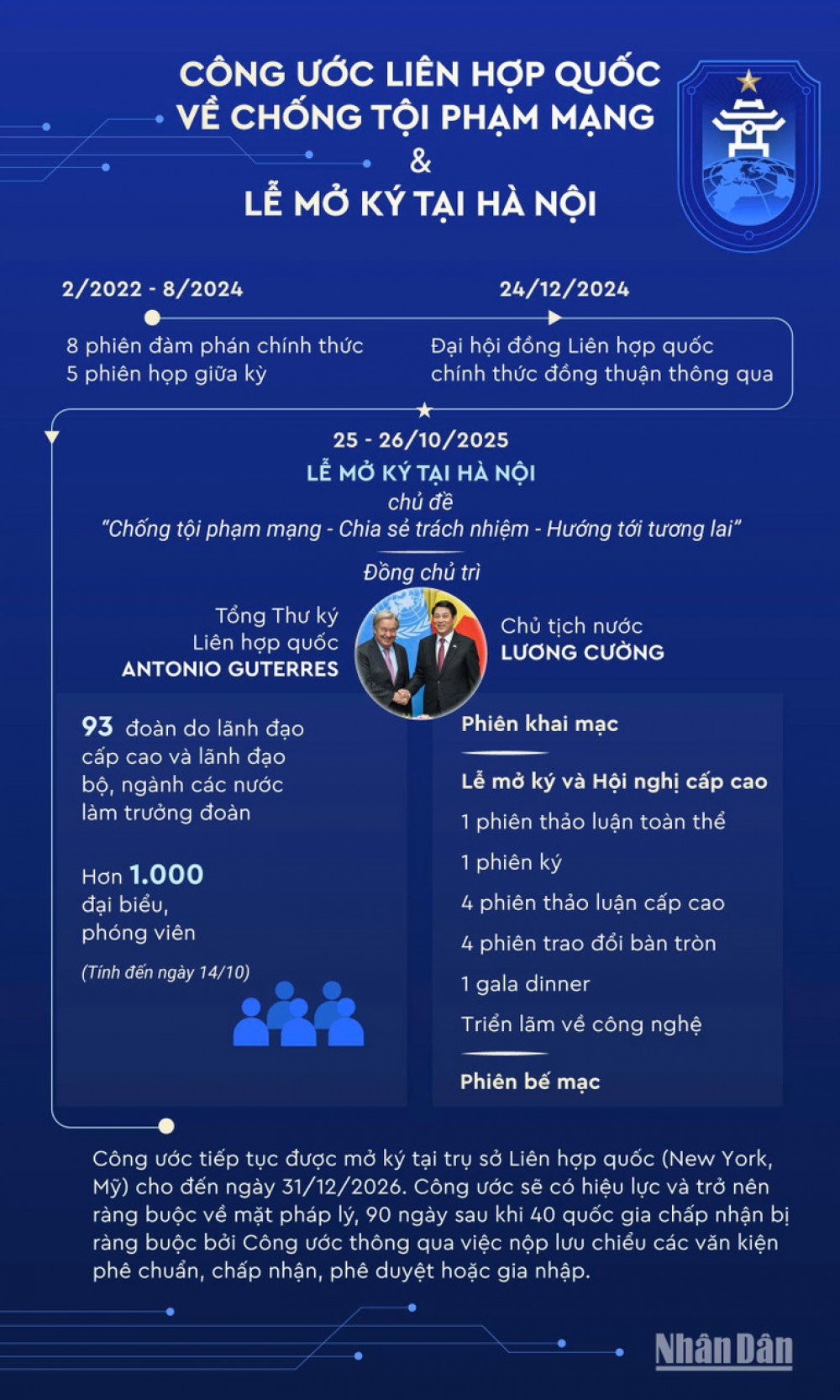 Lễ mở ký Công ước Liên hợp quốc về chống tội phạm mạng với chủ đề “Chống tội phạm mạng-Chia sẻ trách nhiệm-Hướng tới tương lai” đánh dấu lần đầu tiên Việt Nam đăng cai lễ ký một công ước của Liên hợp quốc.