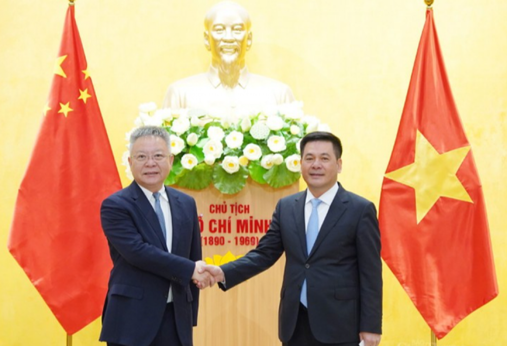 Bộ trưởng Bộ Công Thương Nguyễn Hồng Diên làm việc với đồng chí Thẩm Hiểu Minh, Bí thư Tỉnh ủy Hải Nam, Trung Quốc - Ảnh: MOIT