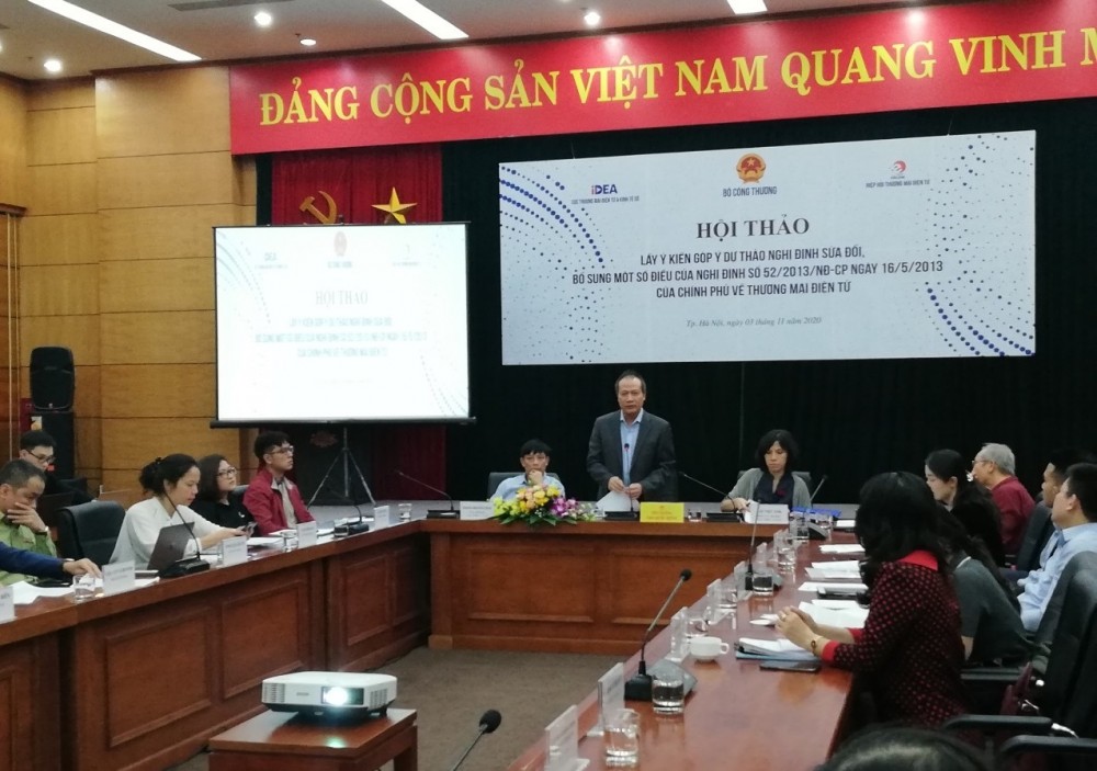 Năm 2018, Bộ Công Thương đã tổ chức Hội nghị sơ kết Nghị định số 52. Hội nghị được lắng nghe ý kiến nhiều chiều từ cơ quan quản lý nhà nước và doanh nghiệp hoạt động trong lĩnh vực TMĐT, từ đó, tổng kết đánh giá và đề xuất với Chính phủ sửa đổi, bổ sung Nghị định. Ngày 07 tháng 10 năm 2020, Chính phủ đã thông qua Nghị quyết số 144/NQ-CP về việc xây dựng Nghị định sửa đổi, bổ sung một số điều của Nghị định số 52 về thương mại điện tử. Trong đó, Nghị quyết đã thông qua 04 chính sách lớn: Thu gọn đối tượng thực hiện thủ tục hành chính; Minh bạch thông tin hàng hóa, dịch vụ trong hoạt động TMĐT, chống hàng giả, hàng xâm phạm quyền sở hữu trí tuệ; Quản lý hoạt động TMĐT trên mạng xã hội; Quản lý hoạt động TMĐT có yếu tố nước ngoài.