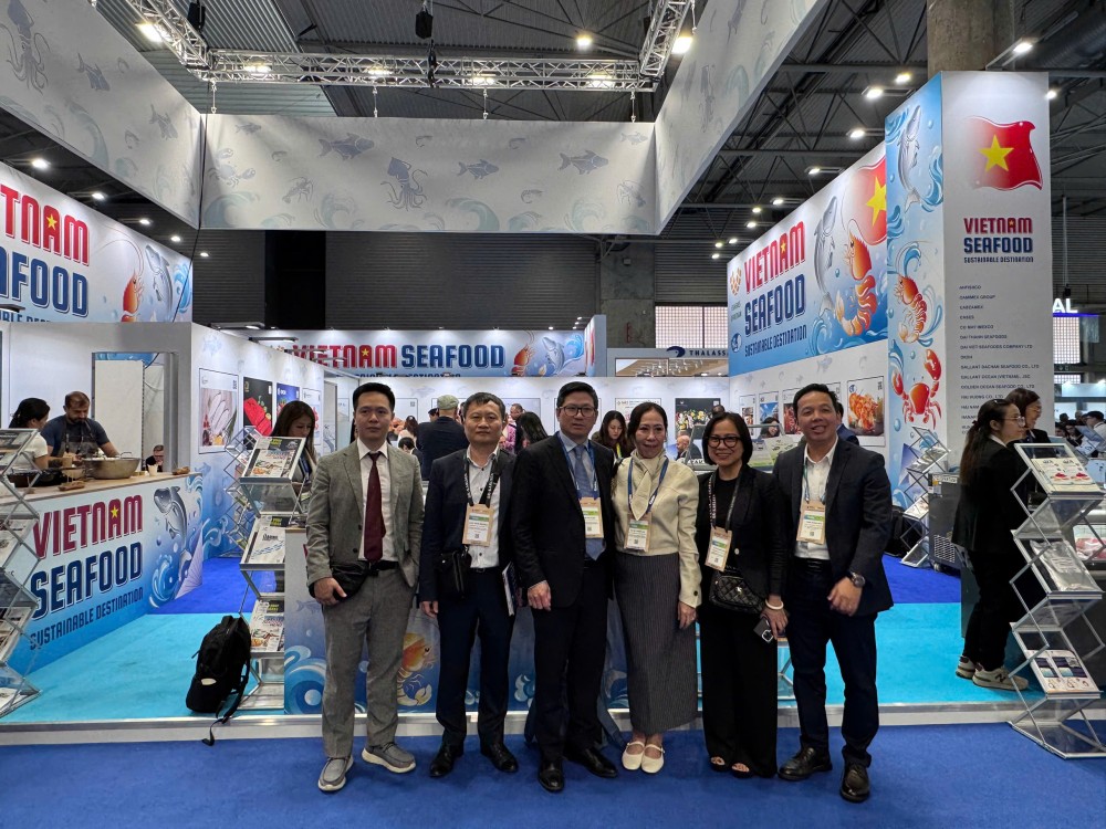 Đại sứ Đặc mệnh toàn quyền nước Cộng hòa Xã hội Chủ nghĩa Việt Nam tại Tây Ban Nha, đồng chí Đoàn Thanh Song và tham tán thương mại, đồng chí Lưu Văn Khang đã đến thăm các Doanh nghiệp thuỷ sản Việt Nam cũng như trao đổi thông tin, nắm bắt tình hình xuất khẩu thuỷ sản của Việt Nam. Tại gian hàng, ngài Đại sứ đã có cuộc trò chuyện với bà Tô Thị Tường Lan– Phó Tổng Thư ký Hiệp hội Chế biến và Xuất khẩu Thuỷ sản Việt Nam và các doanh nghiệp tham gia gian hàng Việt Nam nhằm trao đổi các thông tin về tình hình xuất khẩu thuỷ sản của Việt Nam cũng như xư hướng nhập khẩu và những khó khăn tại thị trường Châu Âu trong thời gian tới.