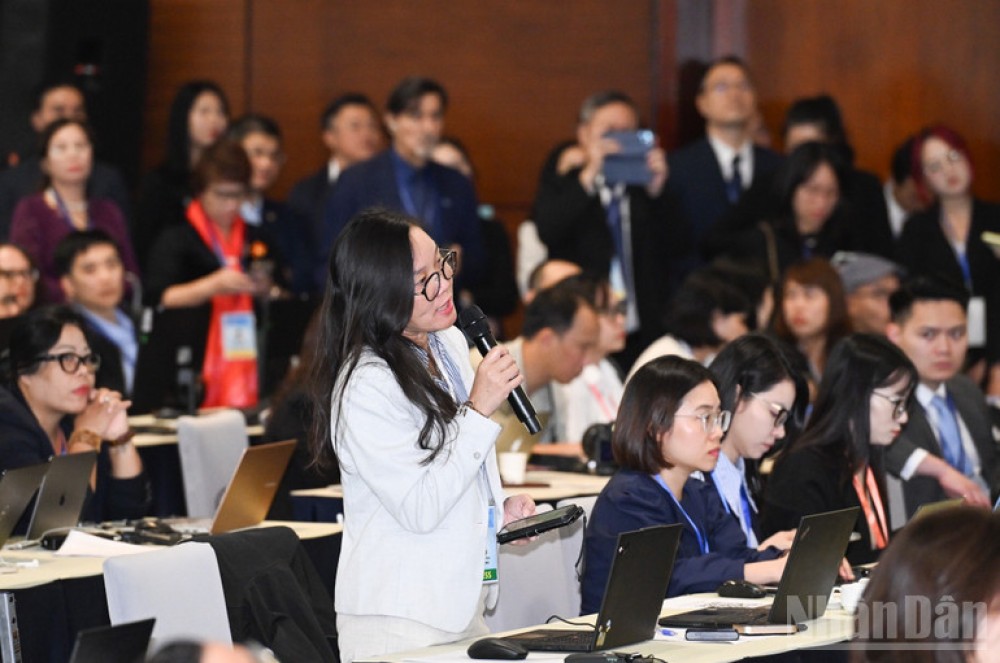 Phóng viên đặt câu hỏi tại họp báo. (Ảnh: TRẦN HẢI)