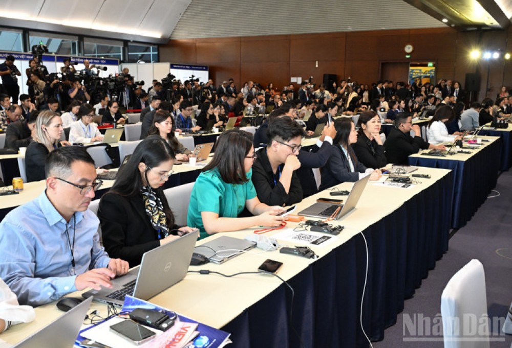 Đại diện truyền thông Việt Nam và quốc tế tại họp báo. (Ảnh: TRẦN HẢI)