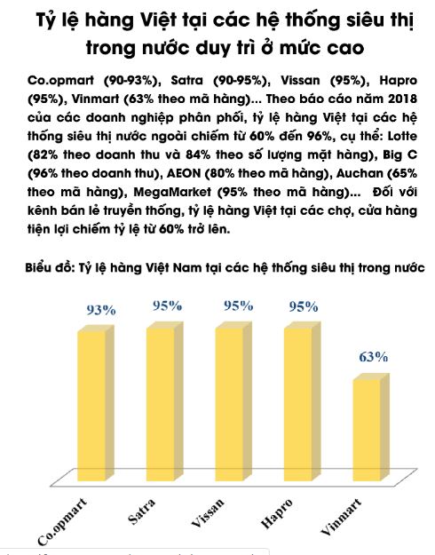 Quá trình triển khai cũng cho thấy các doanh nghiệp bán lẻ trong và ngoài nước đã đồng hành cùng Bộ Công Thương và Sở Công Thương một số địa phương tổ chức các tuần hàng, giúp nông sản Việt có thị trường tiêu thụ ổn định trong nước và từng bước xây dựng thương hiệu. Có thể kể đến như Hội chợ đặc sản vùng miền Hà Nội tổ chức định kỳ hàng năm từ năm 2014 đến nay; Tuần lễ Cá sông Đà - Đặc sản tỉnh Hòa Bình, Sơn La được giới thiệu quảng bá tại 15 siêu thị Big C khu vực miền Bắc, góp phần tăng độ nhận diện thương hiệu cá Sông Đà có nguồn gốc xuất xứ rõ ràng và có chứng nhận về chất lượng an toàn thực phẩm đến đông đảo người tiêu dùng, từ đó hỗ trợ mở rộng thị trường tiêu thụ mặt hàng cá sông Đà; Tuần lễ Nhãn và Nông sản an toàn tỉnh Sơn La với các sản phẩm nông sản an toàn của tỉnh Sơn La đạt chứng nhận VietGAP, GobalGAP được bày bán cả trong và ngoài siêu thị. Chương trình đã góp phần kích cầu tiêu dùng, tạo thị trường tiêu thụ ổn định, góp phần xây dựng thương hiệu cho nông sản an toàn của tỉnh Sơn La; Tuần lễ vải thiều Lục Ngạn - Bắc Giang không chỉ tiêu thụ số lượng lớn trong siêu thị Big C Việt Nam, mà còn góp phần quảng bá, đưa thương hiệu trái vải thiều Lục Ngạn –- Bắc Giang đến với người tiêu dùng Việt Nam trên khắp cả nước; Tuần lễ đặc sản Tây Bắc và các tỉnh miền núi phía Bắc: người dân Thành phố Hồ Chí Minh được tiếp cận với đặc sản an toàn vùng Tây Bắc như măng Kim Bôi, thịt trâu gác bếp Yên Bái, thịt chua Phú Thọ, tương ớt Điện Biên… Mục đích chung của chương trình là hỗ trợ mở rộng thị trường tiêu thụ một số mặt hàng đặc sản tại các vùng, miền, địa phương có nguồn gốc xuất xứ rõ ràng, được cấp Giấy chứng nhận thực hành sản xuất nông nghiệp tốt ở Việt Nam (VietGAP)… tới người tiêu dùng, các nhà phân phối, nhà hàng, khách sạn… góp phần khuyến khích hoạt động sản xuất, kinh doanh thực phẩm an toàn của các địa phương.
