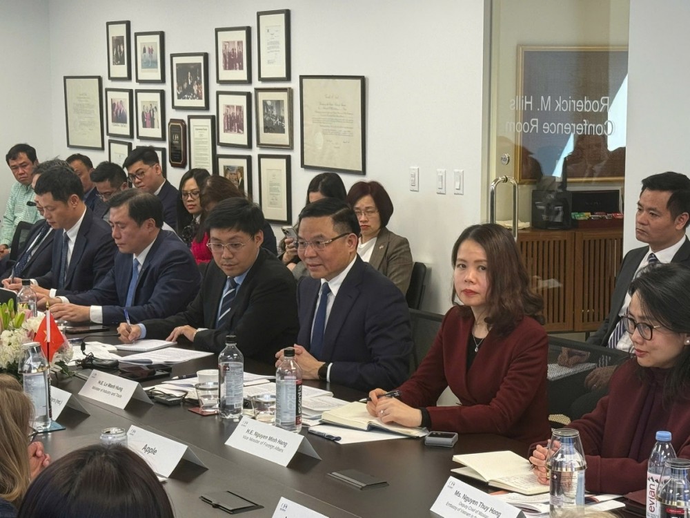 Sau phiên tọa đàm toàn thể, Quyền Bộ trưởng Lê Mạnh Hùng đã có các cuộc tiếp xúc riêng với lãnh đạo Apple, Excelerate Energy và ExxonMobil nhằm trao đổi cụ thể và đi sâu hơn về định hướng hợp tác trong các lĩnh vực công nghệ cao và năng lượng. Tại các cuộc làm việc này, Quyền Bộ trưởng đã trực tiếp lắng nghe các đề xuất của doanh nghiệp, đồng thời làm rõ các ưu tiên chính sách và cam kết của Việt Nam trong việc tạo lập môi trường đầu tư ổn định, minh bạch và thuận lợi cho các dự án dài hạn.