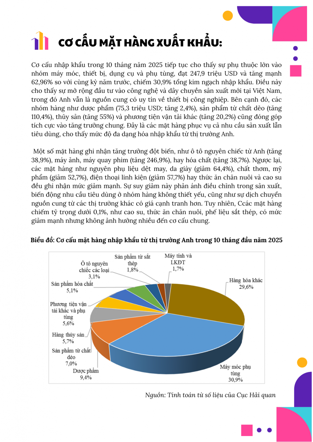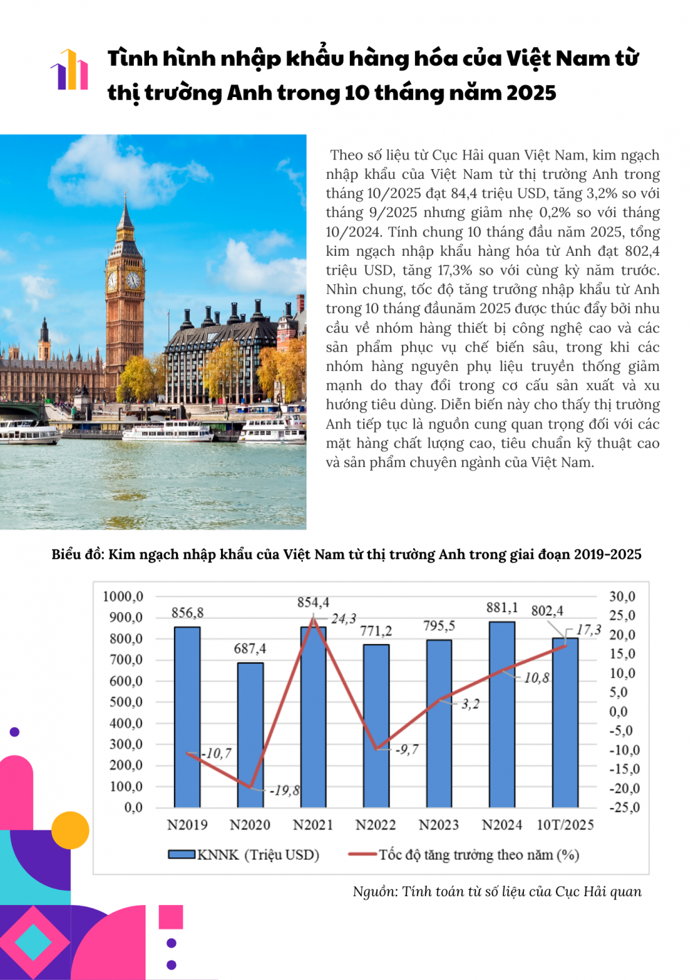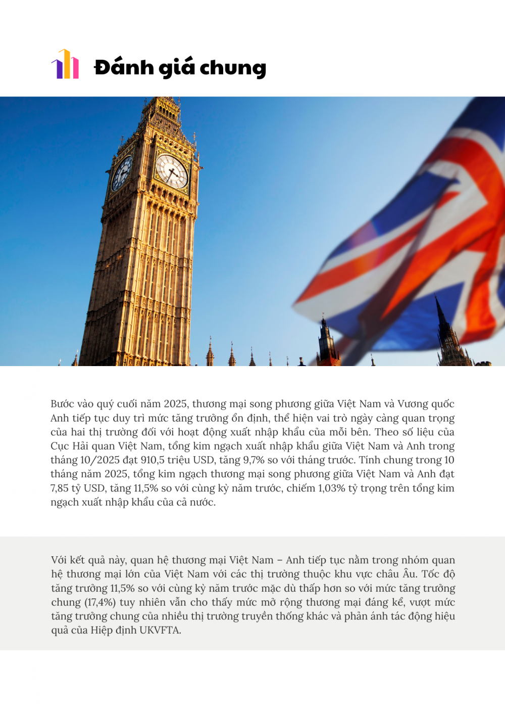 Tháng 8/2025: Tổng kim ngạch xuất nhập khẩu Việt Nam - Anh tăng trưởng 7,6% so với cùng kỳ
