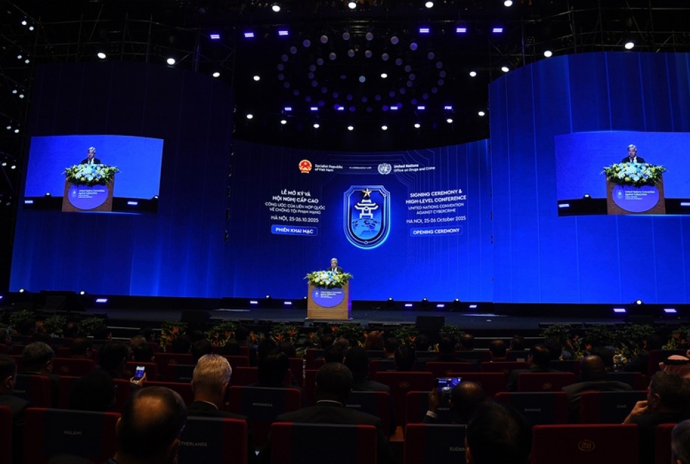 Hôm nay, 25/10, Lễ mở ký Công ước của Liên Hợp Quốc về chống tội phạm mạng với chủ đề "Chống tội phạm mạng - Chia sẻ trách nhiệm - Hướng tới tương lai" diễn ra tại Hà Nội. Đây là dấu mốc lịch sử không chỉ với cộng đồng quốc tế mà còn khẳng định vai trò vị thế của Việt Nam trên trường quốc tế.