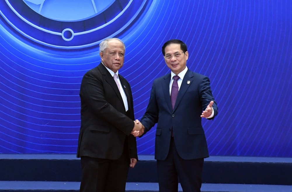 Phó Thủ tướng Bùi Thanh Sơn đón các đại biểu quốc tế đến dự Lễ mở ký - Ảnh VGP/Hải Minh