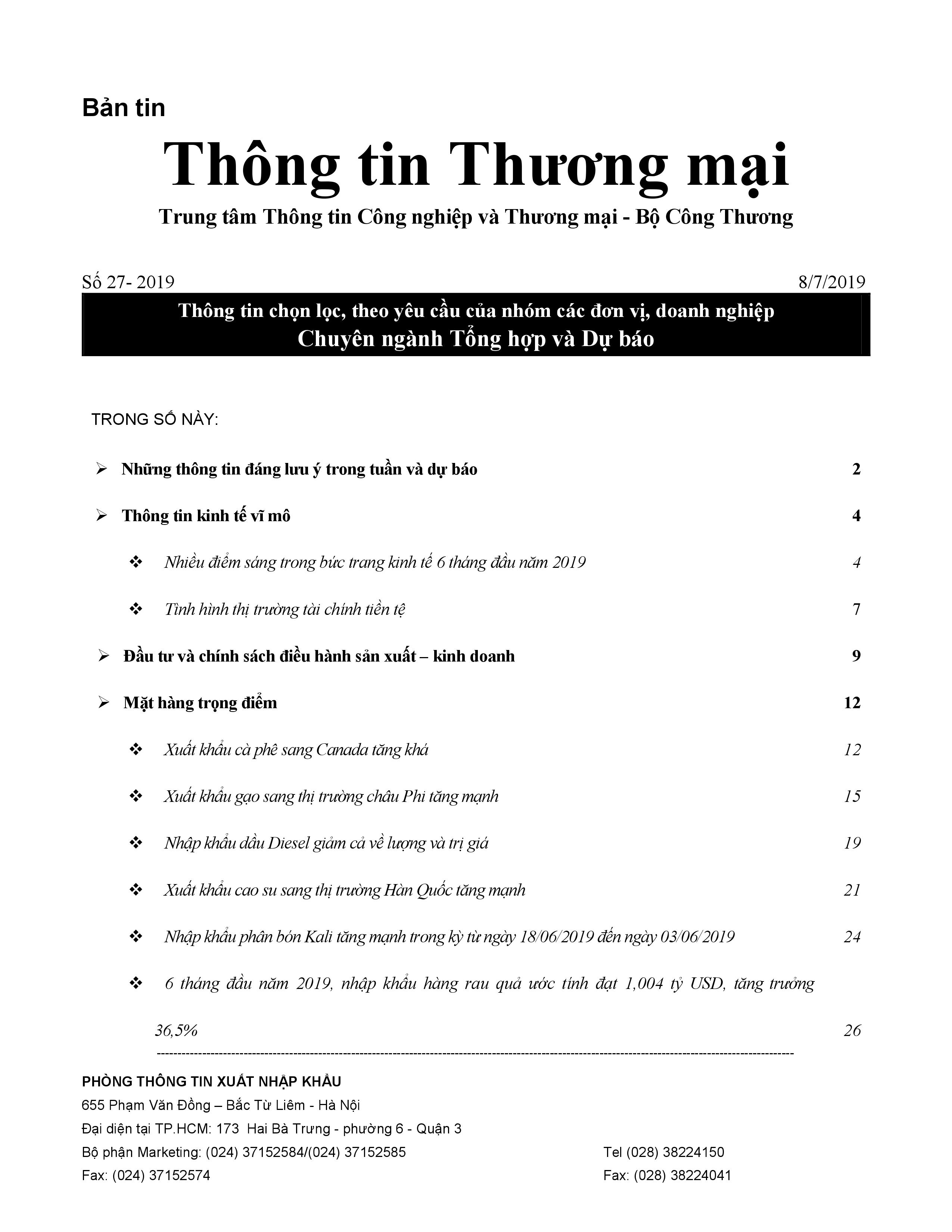 Trung tâm TTCN và TM giới thiệu Bản tin chuyên ngành Tổng hợp và Dự báo Số 27/2019