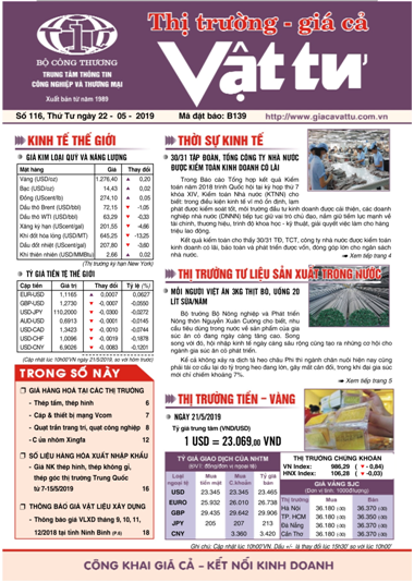 Trung tâm TTCN và TM Mới phát hành Bản tin Thị trường Giá cả Vật tư Số 116, Thứ Tư ngày 22/5/2019