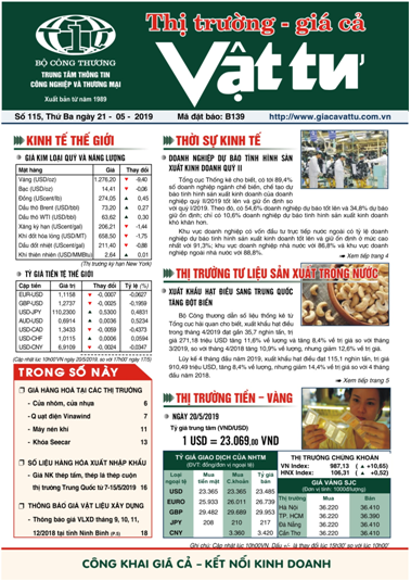 Thị trường Giá cả Vật tư Số 115, Thứ Ba ngày 21/5/2019