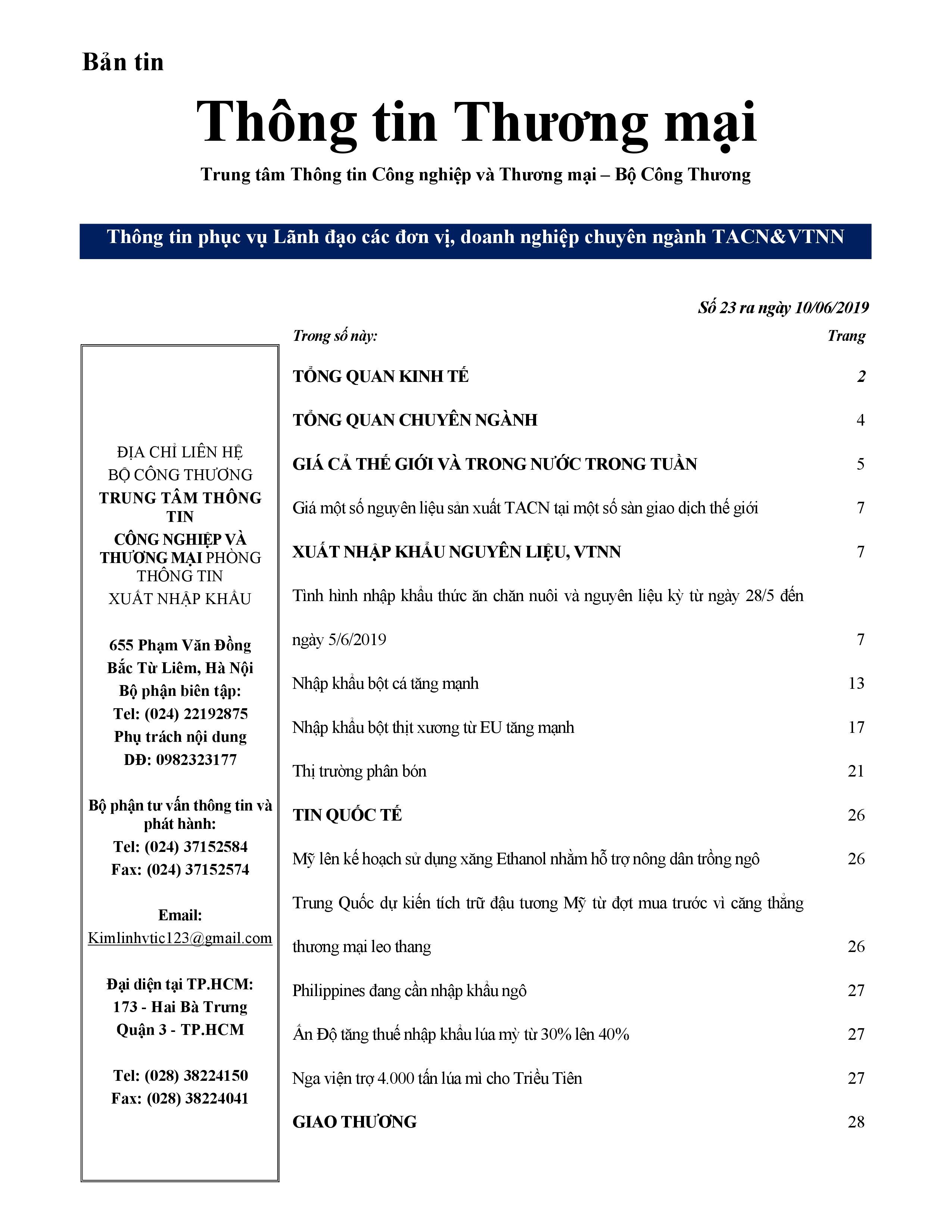 Trung tâm TTCN và TM phát hành Bản tin chuyên ngành TACN&VTNN Số 23/2019