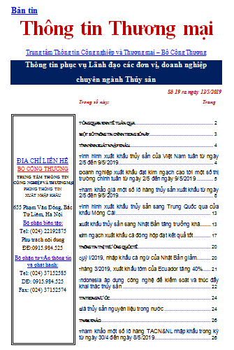Trung tâm TTCN và TM phát hành Bản tin Chuyên ngành Thủy sản số 19.2019