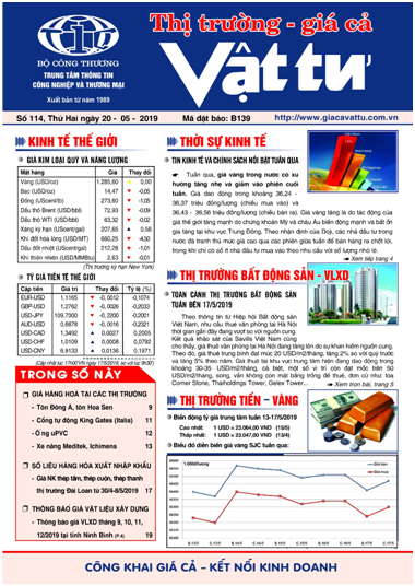 Trung tâm TTCN và TM phát hành Bản tin Thị trường Giá cả Vật tư Số114, Thứ Hai ngày 20/5/2019