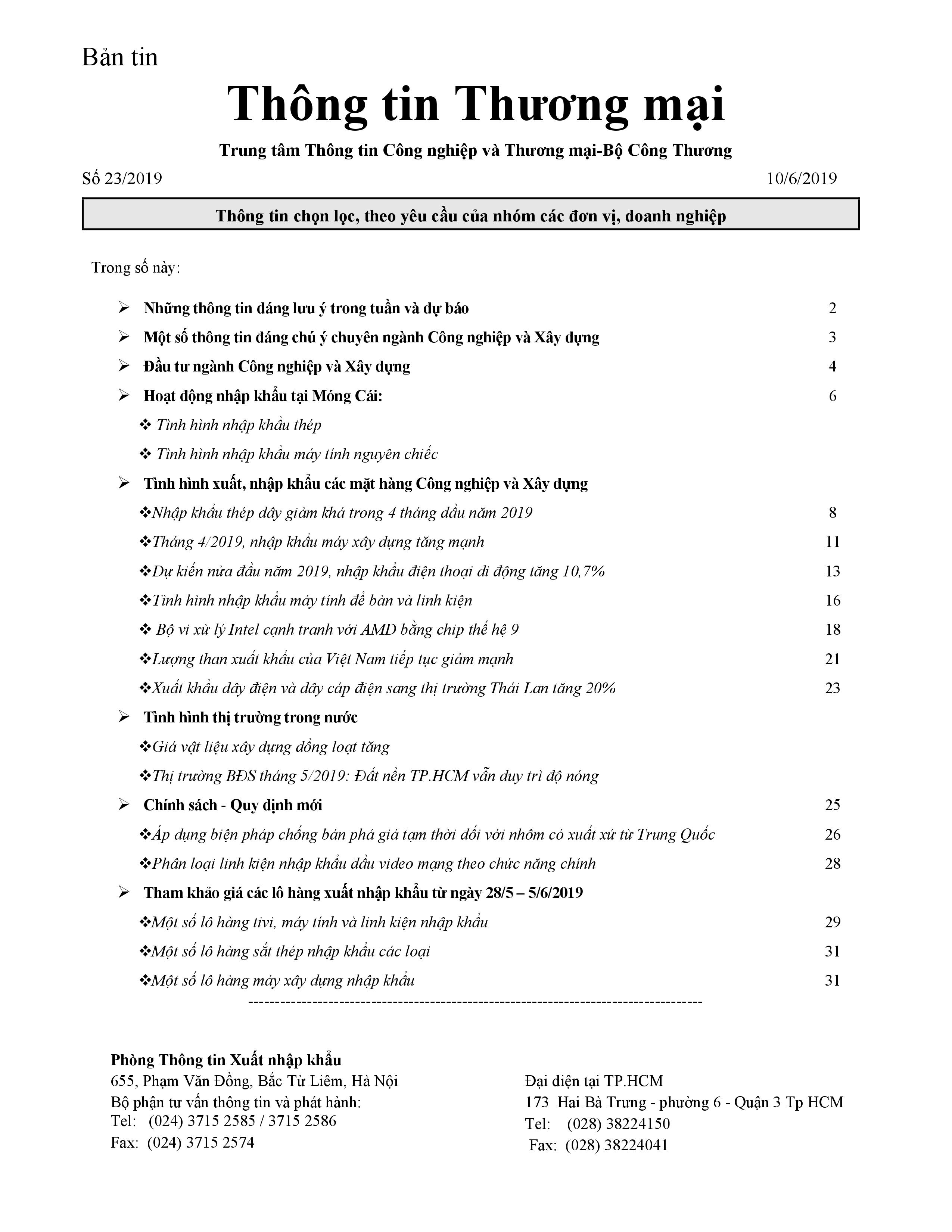 Bản tin có một số tin đáng lưu ý: Quỹ bình ổn xăng dầu âm hơn 620 tỷ đồng - Trung Quốc tăng nhập xi măng Việt Nam - Số liệu thống kê hàng hóa xuất, nhập khẩu tháng 5/2019 - Tham khảo giá NK thép cuộn, thép tấm thị trường Nhật Bản ...